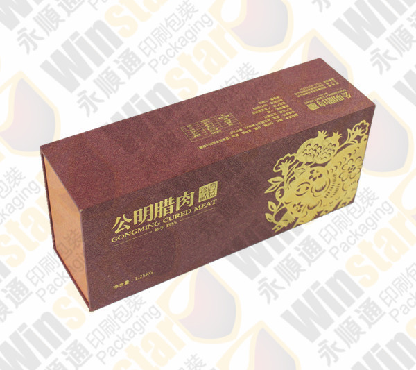 現(xiàn)展示的是我公司一款長期生產(chǎn)食品精美包裝盒(公明臘肉),有需要定制的客戶可聯(lián)系我們。咨詢電話:18948758134